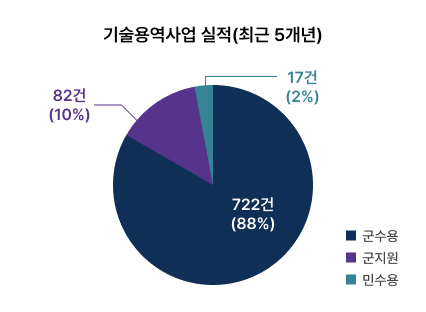 군 관련기관(국방부, 합참, 소요군, 방위사업청 및 각 기관의 산하기관)으로부터 수탁하여 수행하는 기술지원 사업 |