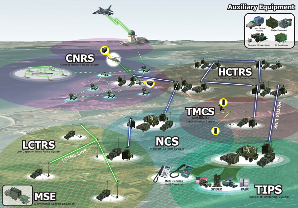 TICN MSC-700K is a large-capacity tactical communication base system intended to ensure the exercise of integrated combat capabilities between surveillance and reconnaissance, command and control, and precision-guided munitions in future battlefield environments and is composed of the main sub system equipments such as an exchange/access system, high and low capacity wireless transmission system, tactical mobile communication system, and wireless combat communication system, and ancillary support equipments such as vehicle and generator.