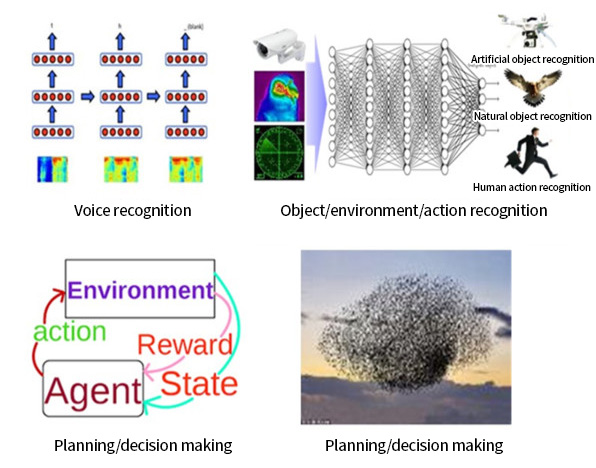 Artificial intelligence has advanced dramatically since 2012, and is emerging as a main core technology for the intellectualization, unmanned operation, and autonomous operation of future weapon systems. The application of artificial intelligence to national defense can largely be divided into the fields of voice recognition, object/environment/action recognition, planning/decision making, and multi-agent intellectualization.