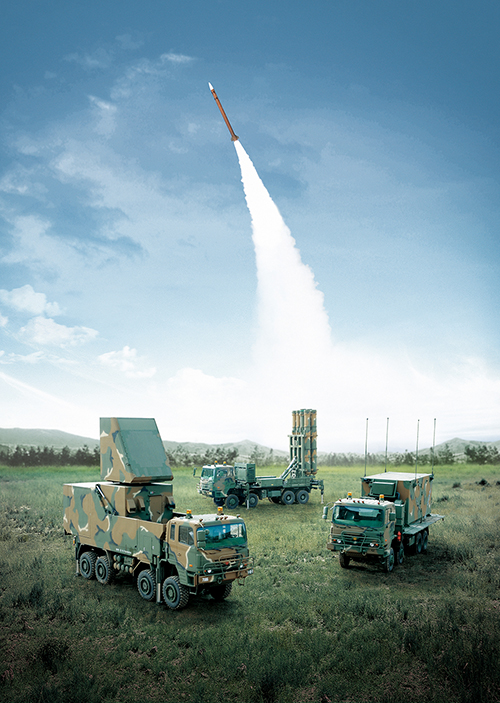 The korean medium-range surface-to-air missile(KM-SAM) system, which had been domestically developed by Agency for Defense Development(ADD), is designed to respond effectively to various aerial threats interupting at mid/low altitude for providing advanced area air defense capability.