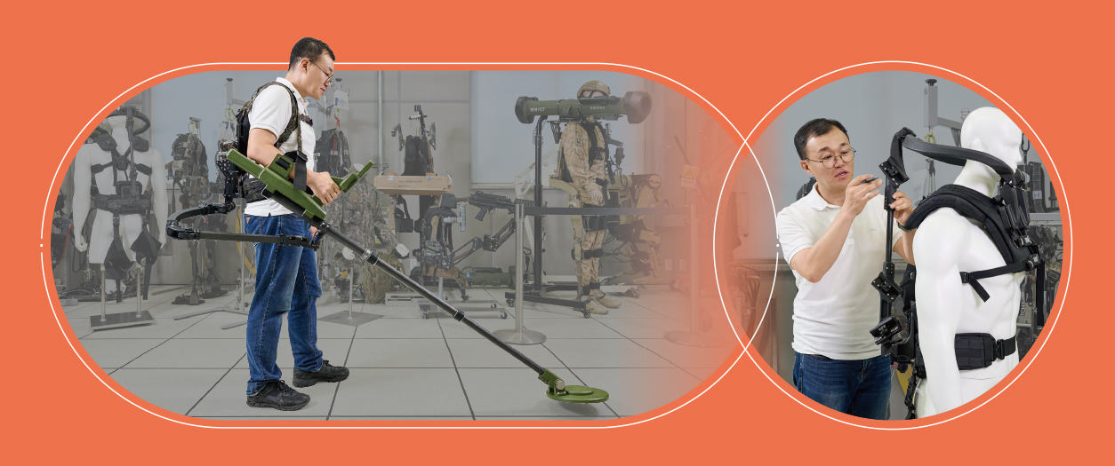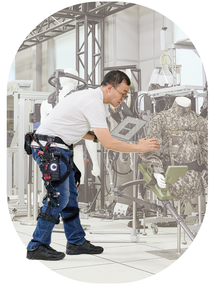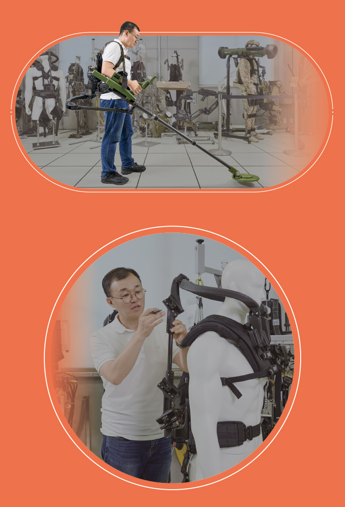 “무기가 고성능으로 진화하면서 걸림돌로 지적되는 부분은 장비의 무게인데요. 이 부분을 개선하는 것이 바로 웨어러블 슈트입니다. 저는 역동적으로 움직여야 하는 병사들의 근육 피로를 덜어 빠르고 효율적으로 전투를 수행할 수 있도록 능동·수동 복합 동력 전달 구조와 무동력 타입을 통한 에너지 절감과 착용성 개선 등에 대한 연구를 지속해왔어요.”