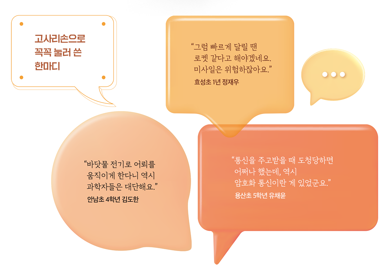 낮에는 하늘이 더 높고 푸르게 보이고, 가을밤 별빛은 한층 더 선명하게 우리 곁에 다가옵니다. 별을 바라보는 어린이들의 눈동자에는 끝없는 호기심이 반짝이지요. 아이들의 질문은 마치 별자리처럼 다양하고 빛나는 이야기로 이어집니다. 국방과학연구소가 어린이 독자들이 던진 흥미로운 물음을 모았습니다.