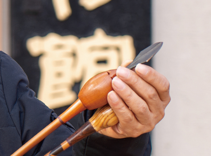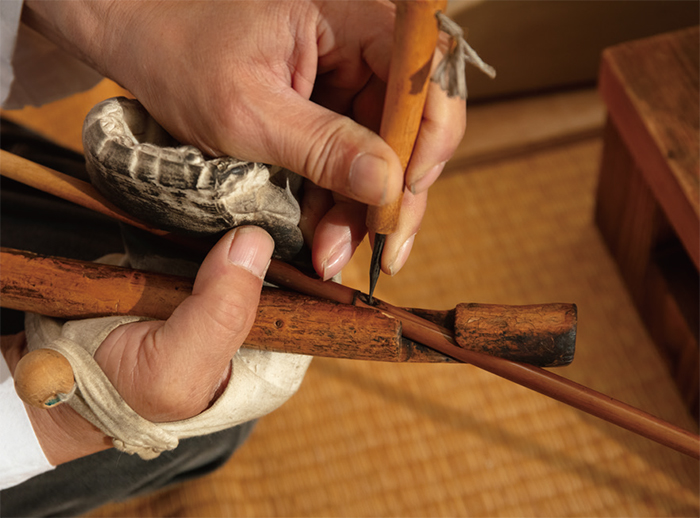 “화살의 몸체가 될 대나무를 선별하는 일부터 깃을 붙이고 최종 졸보기(화살의 모양을 다듬는 작업)에 이르기까지 전 과정에 걸쳐 고도의 집중력을 발휘해야 합니다. 이 때문에 하루 평균 3개 내외의 화살밖에 못 만들지만 온 힘을 다해 혼을 불어넣는 만큼 가장 질 좋은 화살을 세상에 내놓고 있다고 자부합니다.”
