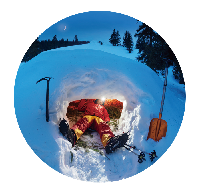 스키나 스노보드, 백팩 등을 세워 즉석 방풍벽을 만들고, 불필요한 움직임과 말을 줄여 에너지 소모를 최소화해야 한다. 체온 유지가 생존의 핵심이다. 또 조난 신호를 만드는 것이 중요하다. 스마트폰 손전등을 일정한 간격으로 점멸하거나, 고글 렌즈나 금속 물체로 햇빛을 반사해 시각적 신호를 보낼 수 있다.