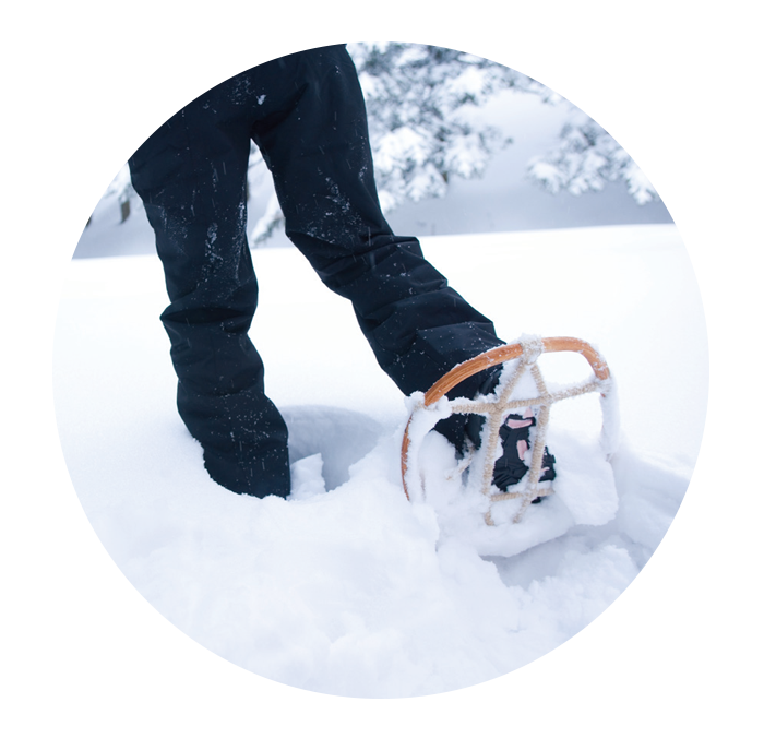 나뭇가지나 단단한 막대를 신발 밑에 대고 끈이나 가방 스트랩, 옷끈 등으로 고정하면 발바닥 접지 면적이 넓어져 눈에 덜 빠지게 된다. 여기에 울퉁불퉁한 나무껍질을 벗겨 덧대면 미끄러지는 현상을 줄일 수 있다. 다만 이러한 방법은 임시 대응책에 불과하므로 과신하지 않도록 주의하자.